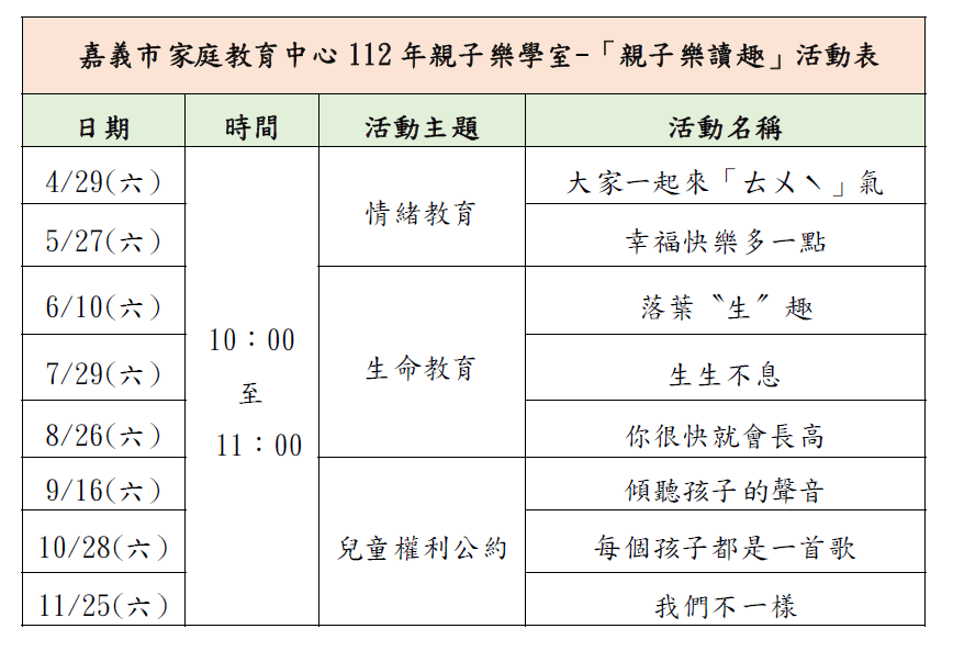 四、活動場地:嘉義市家庭教育中心一樓親子樂學室。