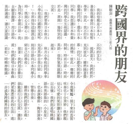 本校三年八班陳敏治同學作品入選刊登國語日報