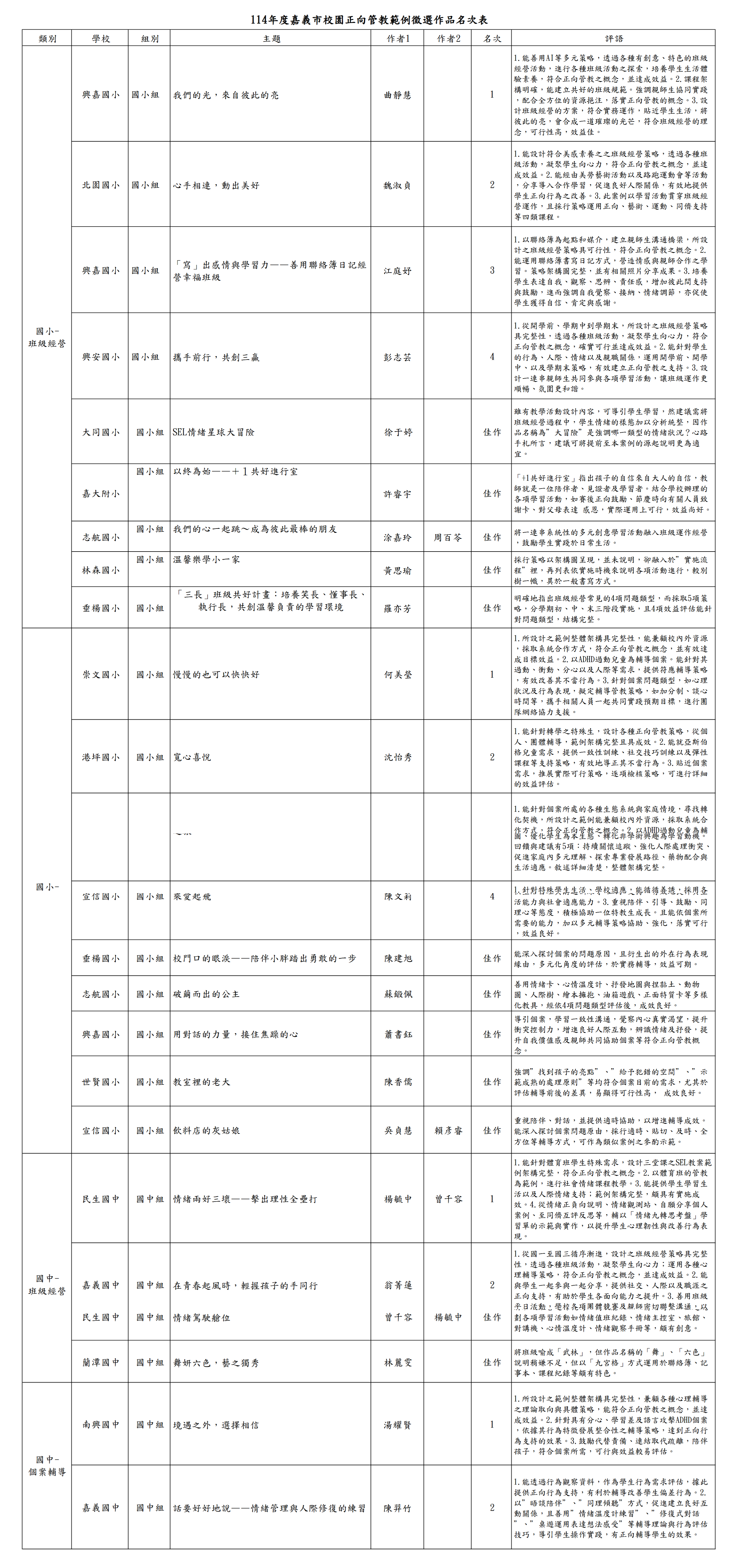 嘉義巿114年度「友善校園」正向管教範例徵選之得獎名單如附件。恭喜得獎老師。