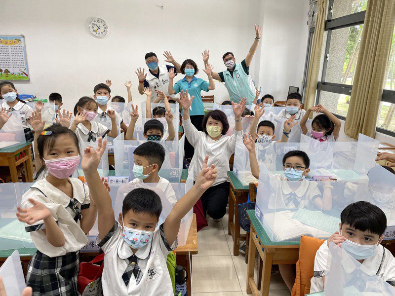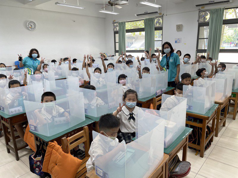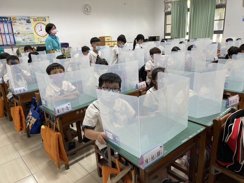興嘉國小二年級學童於嘉義大學新民校區的教室上課1學年,教室同樣準備防疫隔板。記者林伯驊/攝影
