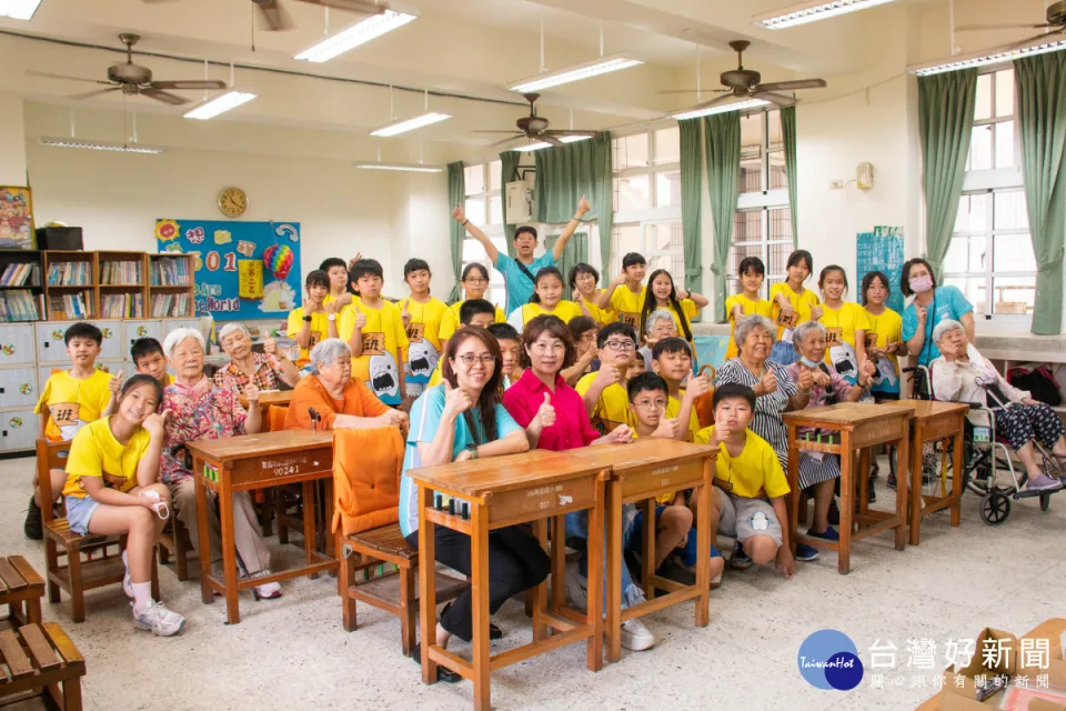 興嘉國小生與長照中心長輩一起活動大合照/保康基金會提供