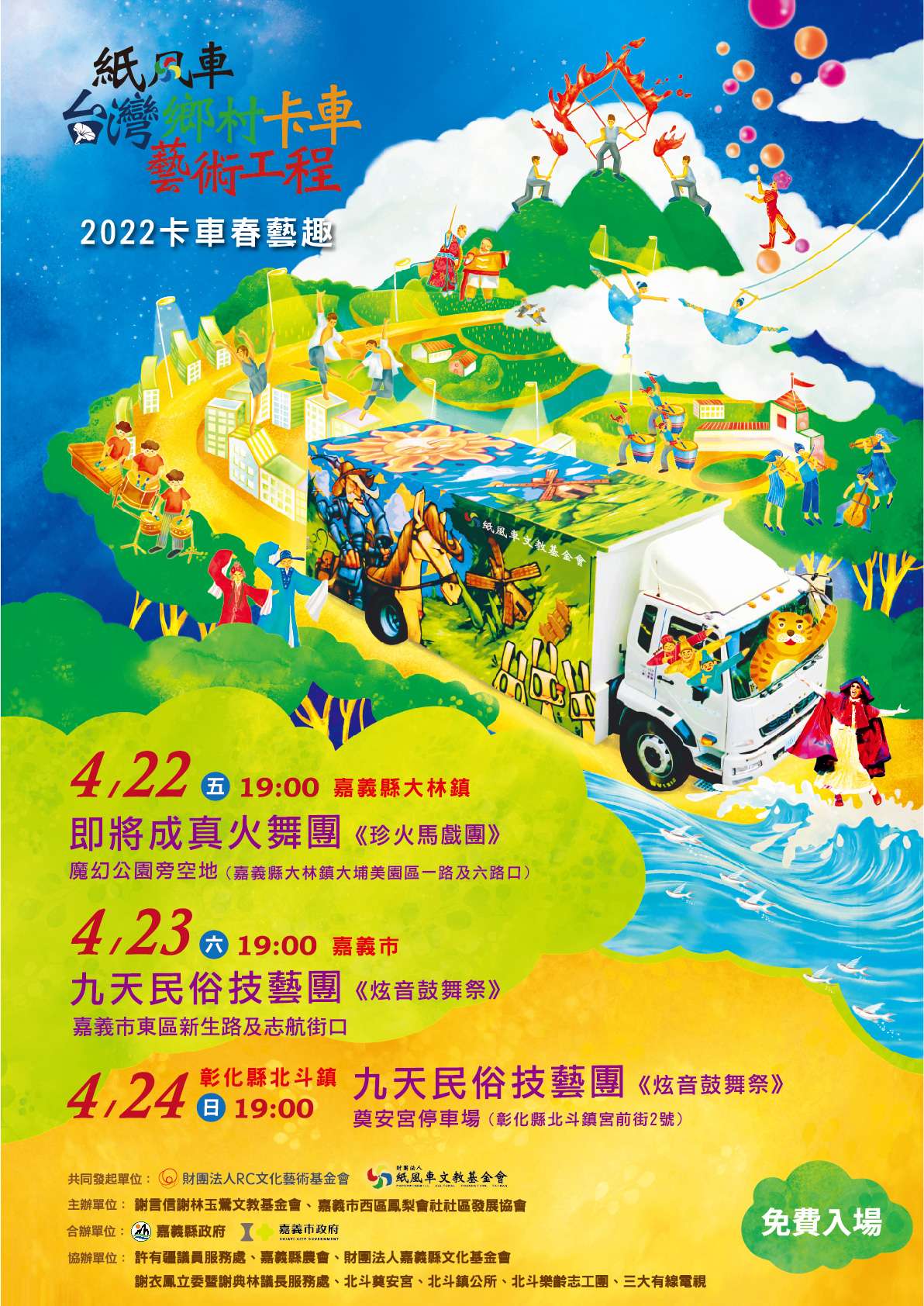 九天民俗技藝團於4/23(六) 1900 嘉義東區新生路及志航街口演出《炫音鼓舞祭》, 誠摯的歡迎嘉義市的大小朋友前來觀賞演出,