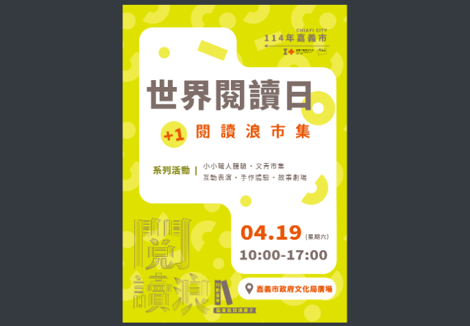 主旨:轉知本府文化局辦理「世界閱讀日:閱讀浪+1市集」,請 查照。